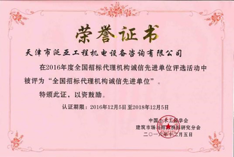 2016年度招標代理機構先進單位