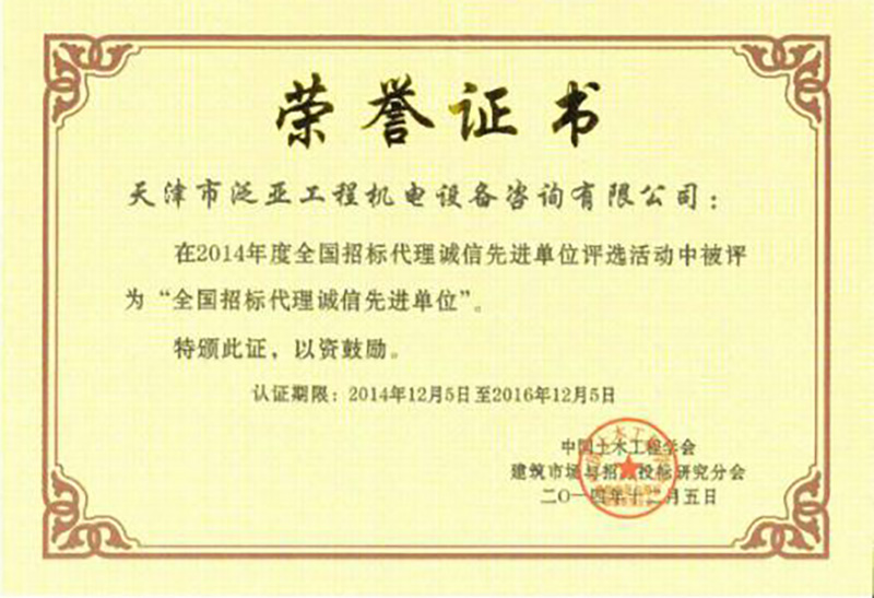 2014年度全國招標代理誠信先進單位
