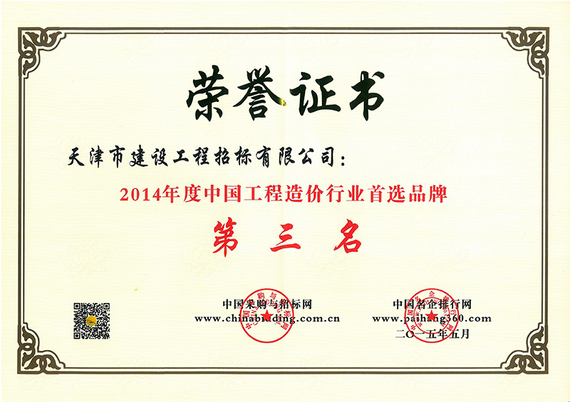 14年度造價行業首選品牌第三名